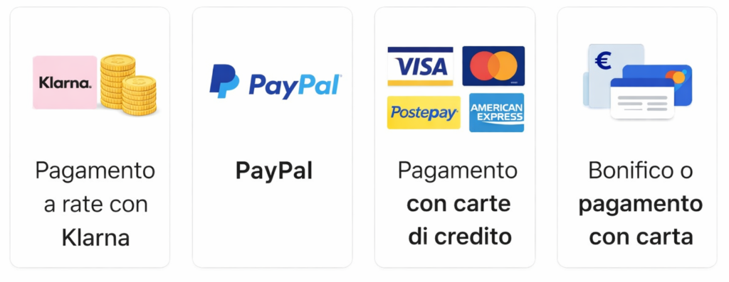Pagamento sul sito https://fratelliimbriani.com/ tramite Paypal,Klarna,Carta di Debito/Credito , oppure tramite bonifico bancario