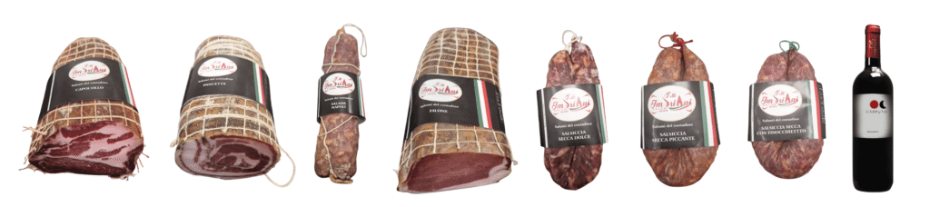 Quando apri una delle loro Box scopri molto più che salumi: tocchi con mano la passione, il sacrificio, la dedizione che solo chi mette l’anima nel proprio mestiere può dare. Tutti i salumi sono realizzati a mano, con carni suine 100% italiane, stagionature lente, budelli naturali — niente scorciatoie, niente artifici. Solo ciò che la tradizione prevede, ciò che la natura concede, ciò che il gusto autentico richiede.