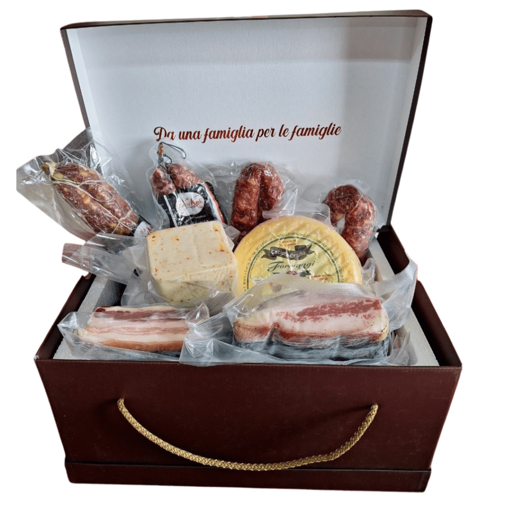 Quando apri una delle loro Box scopri molto più che salumi: tocchi con mano la passione, il sacrificio, la dedizione che solo chi mette l’anima nel proprio mestiere può dare. Tutti i salumi sono realizzati a mano, con carni suine 100% italiane, stagionature lente, budelli naturali — niente scorciatoie, niente artifici. Solo ciò che la tradizione prevede, ciò che la natura concede, ciò che il gusto autentico richiede.